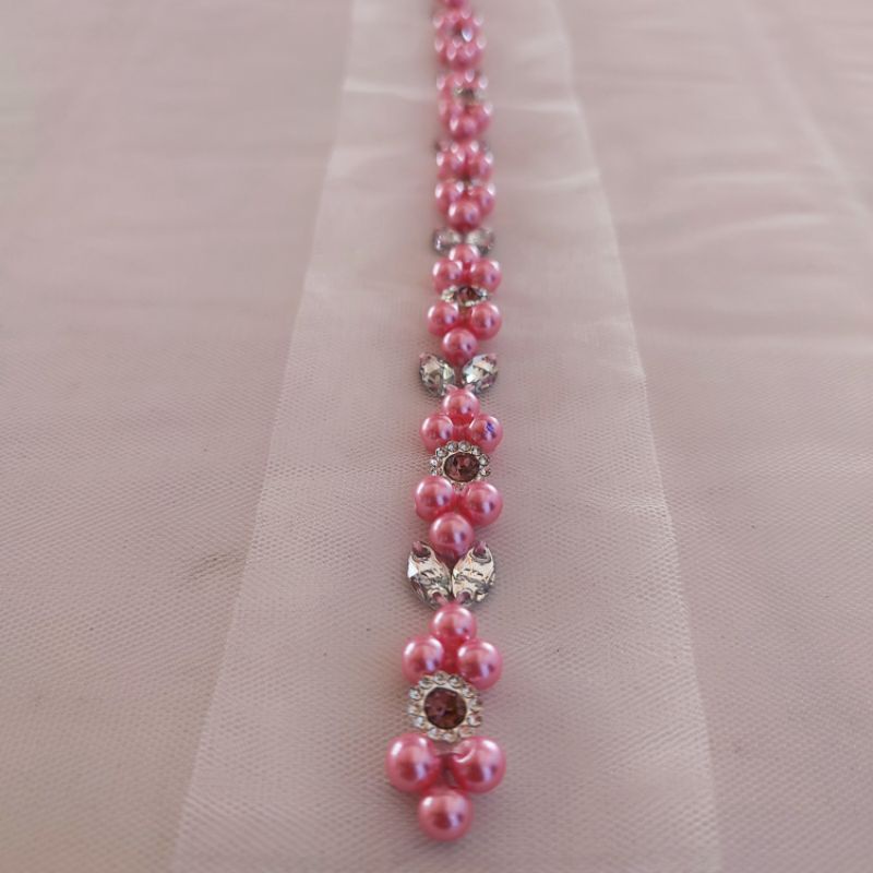 Taburan manik pada bahagian leher dan di hujung lengan di jahit dengan pearls, kristal.
